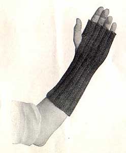 Cast on 50 stitches, knit 2, purl 2 for 12 inches, bind off, sew up, leaving 2 inches space for the thumb 4 inches from one end.
